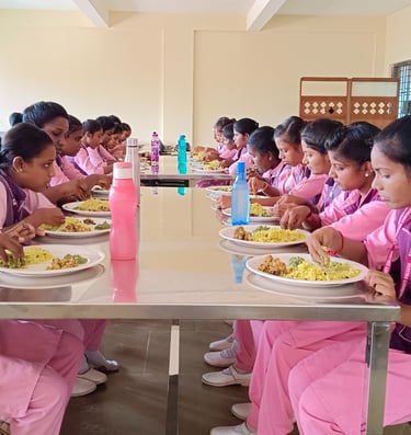 "We provide a nutritious, free mid-day meal to all students. This initiative aims to support students' health and well-being, ensuring they receive balanced nutrition while they focus on their studies, thereby enhancing their learning experience. We have well cleaned and highly hygiene dining room"